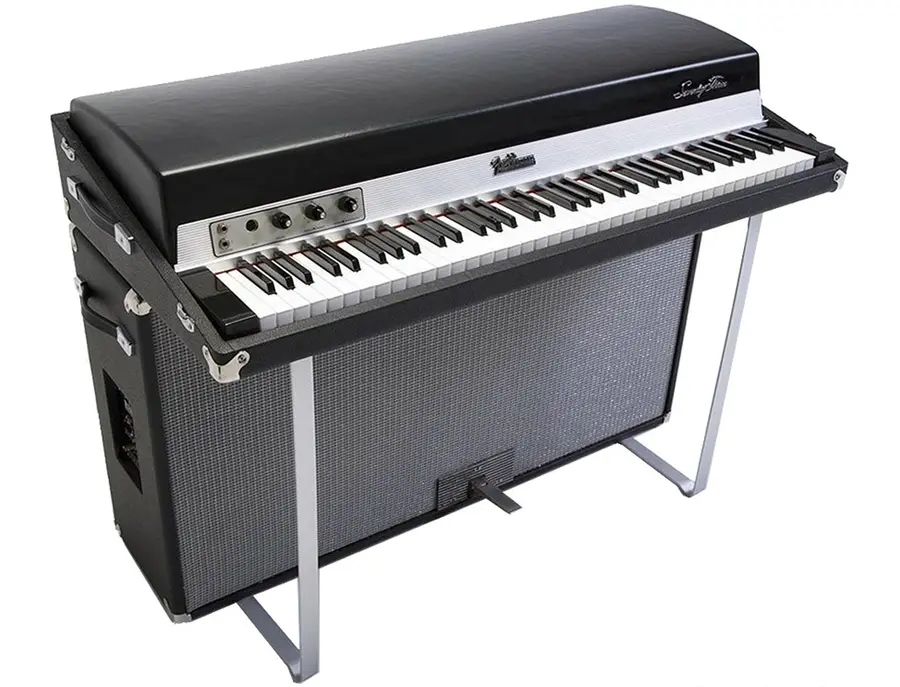 Electric piano brand invented by Harold Rhodes that became popular in the 70s.
